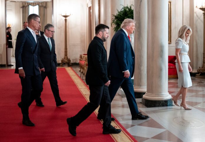 Tổng thống Trump đã gặp Tổng thống Ukraine Volodymyr Zelensky và các nhà lãnh đạo châu Âu tại Nhà Trắng vào thứ Hai, trong một nỗ lực thân thiện nhưng chưa có kết quả rõ ràng nhằm chấm dứt chiến tranh của Nga tại Ukraine.