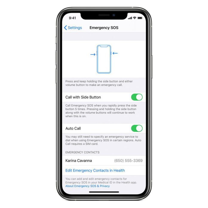 Để thực sự truy cập vào tính năng SOS khẩn cấp, hãy nhấn và giữ nút bên của điện thoại và một trong hai nút âm lượng, sau đó sử dụng thanh trượt SOS khẩn cấp, bạn sẽ lập tức được kết nối tới các dịch vụ khẩn cấp trong khu vực của bạn. Bạn cũng có thể giữ nút bên cạnh và nút âm lượng nếu trước đó bạn đã bật Gọi bằng cách giữ nút.