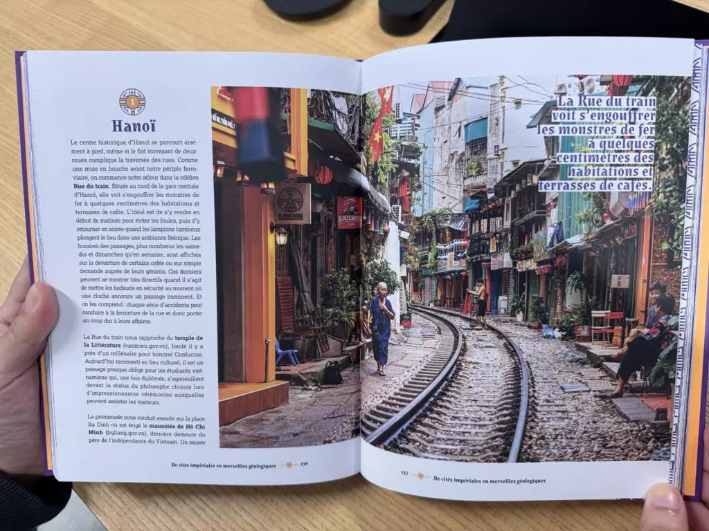 “Đây là một cuốn sách minh họa, có nhiều hình ảnh, có cả phố Đường tàu nổi tiếng ở Hà Nội, giới thiệu một số địa điểm không thể bỏ qua khi tới Việt Nam. Đây là một câu chuyện, một hành trình, nên tôi tìm cách nói với độc giả, kiểu : “Nào, hãy theo tôi, lên tàu cùng tôi, khám phá địa danh này, địa danh kia”. Tôi nghĩ thông qua hành trình này mà tôi kích thích được độc giả khám phá đất nước bằng tàu hỏa.