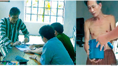 Ngoài bài viết với những thông tin vừa kể, tờ Công an Nhân dân còn đăng hai tấm ảnh, được khẳng định là mới chụp, một chụp blogger Điếu Cày đang được khám bệnh và một chụp ông đang nhận một cái ca lớn từ tay một người không có diện mạo.