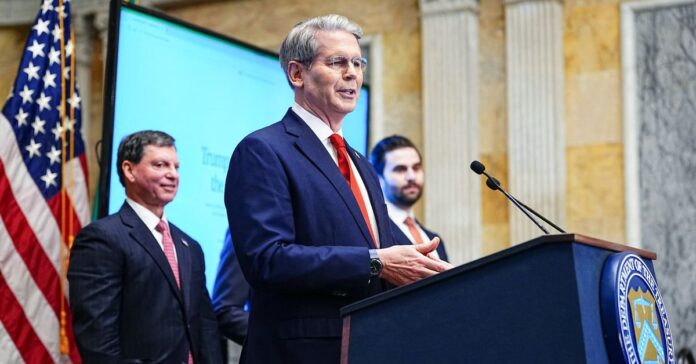 Khi được hỏi liệu các cuộc kiểm toán có gây ảnh hưởng tiêu cực đến các khoản kiều hối hợp pháp mà người di cư gửi cho gia đình ở nước ngoài hay không, ông Bessent nói: “Không, không nên. Bất cứ ai có thể chứng minh nguồn gốc của số tiền đó… đều không sao.” Bộ trưởng Tài chính Hoa Kỳ Scott Bessent phát biểu trong cuộc họp báo công bố trang web chính thức của Tài khoản Trump, tại Bộ Tài chính ở Washington, D.C., Hoa Kỳ, ngày 17 tháng 12 năm 2025. REUTERS/Aaron Schwartz Mua bản quyền
