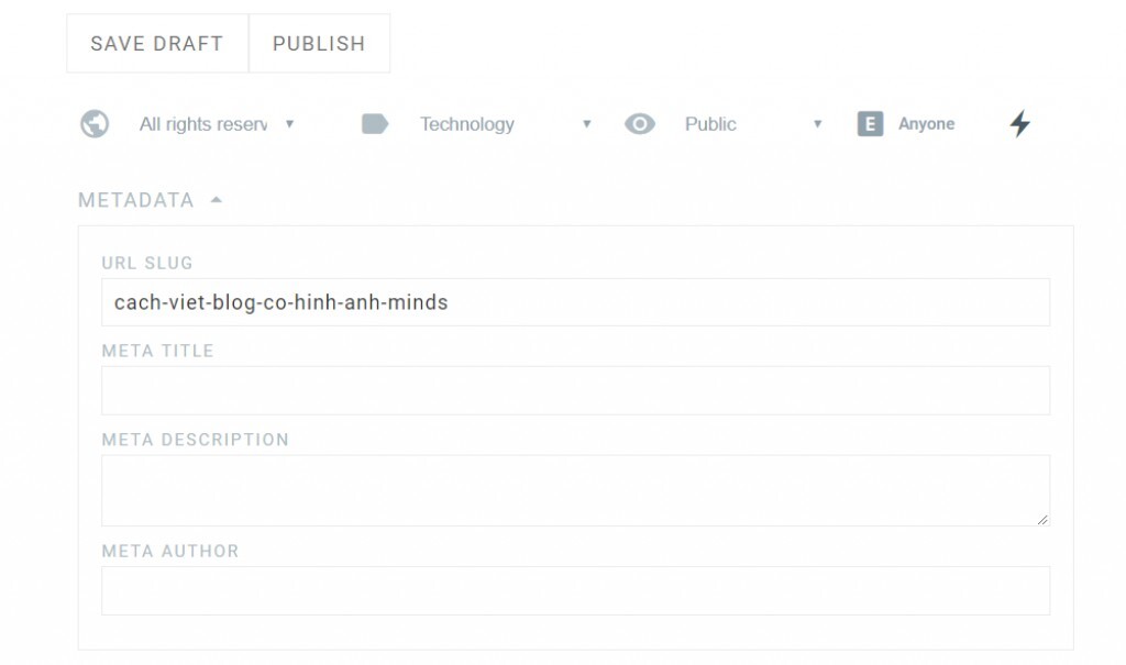 – License: Đây chính là nơi chọn tuyên bố bản quyền bài viết, thông thường mình chọn All rights reserved cho bài tự viết.