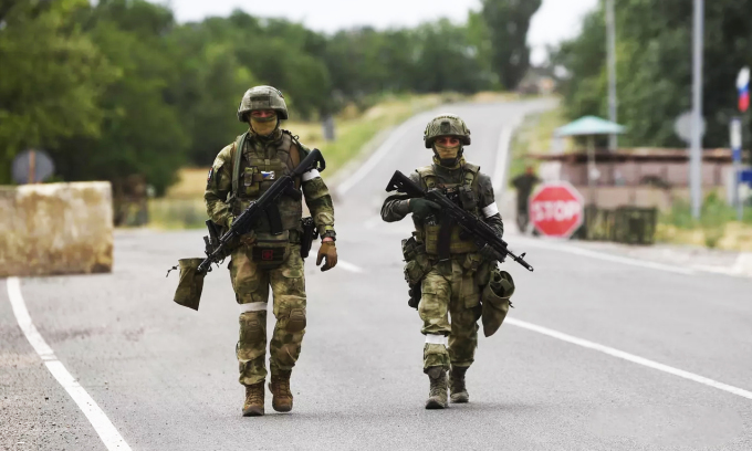 Ảnh 1: Quân nhân Nga đi tuần tại khu vực miền nam Ukraine ngày 27/6. Ảnh: RIA Novosti.