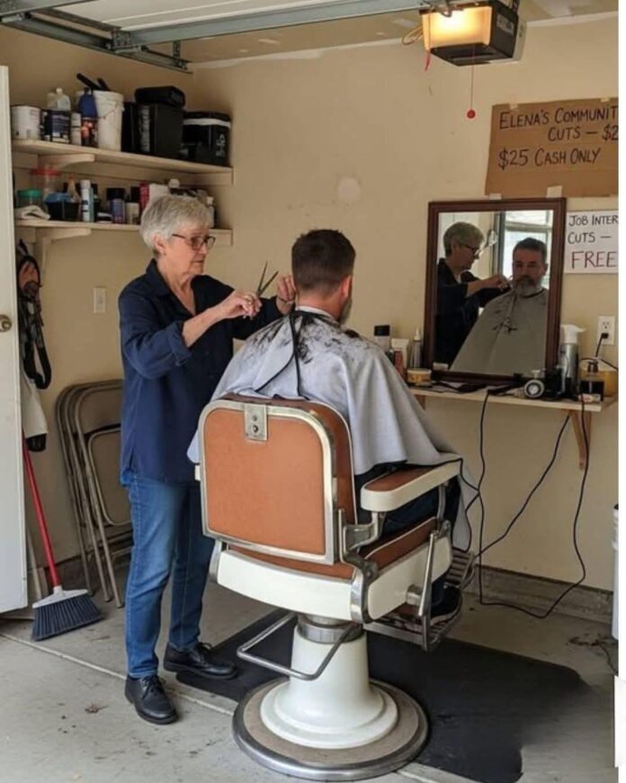 Tôi tên là Elena. Tôi 71 tuổi và tôi cắt tóc trong gara nhà mình. 25 đô la, chỉ nhận tiền mặt, không cần đặt lịch hẹn. Ai đến cũng sẽ ngồi trên chiếc ghế thủy lực cũ mà tôi giữ lại từ tiệm làm tóc cũ, và tôi cố gắng hết sức để họ cảm thấy mình là con người trở lại.