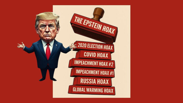 Đó là từ mà ông ta dùng làm vũ khí nhiều hơn bất kỳ từ nào khác, là lá chắn của ông ta trước trách nhiệm giải trình và là thanh kiếm của ông ta trước sự thật. Trong gần một thập kỷ, Trump đã bác bỏ mọi mối đe dọa đối với quyền lực của mình, từ Nga đến Ukraine, từ COVID đến biến đổi khí hậu, từ cuộc bầu cử năm 2020 đến E. Jean Carroll, và giờ là vụ email của Epstein, bằng cùng một cái mác rỗng tuếch: “trò lừa bịp”.