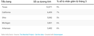 Các hệ thống nhà tù tiểu bang với ca nhiễm COVID-19 dương tính nhiều nhất và số tù nhân giảm thấp nhất