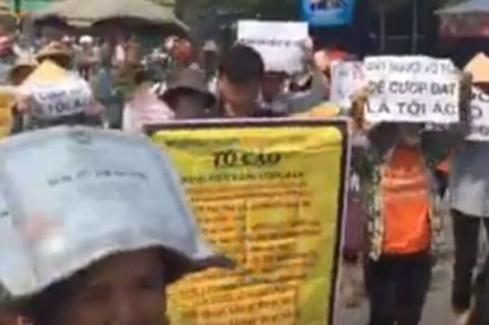 Lúc hơn 10 giờ chúng tôi được anh Trịnh Bá Phương là con của bà Cấn Thị Thêu trong đoàn biểu tình cho biết: