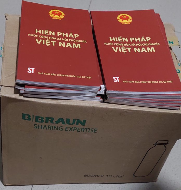 Hôm qua, nhân tiện gửi đồ ăn chay vào trại 6 cho anh Hùng, Tử Đinh Hương cũng đã chuyển hơn 100 cuốn Hiến pháp đến một địa chỉ an toàn và tin cậy, để trao tận tay những người dân có nhu cầu. Những cuốn hiến pháp này là một phần của số Hiến pháp còn lại mà anh hùng chưa kịp trao đi thì bị bắt và may mắn không bị phía an ninh xem là tài liệu phản động nguy hiểm nên không bị tịch thu khi khám nhà.