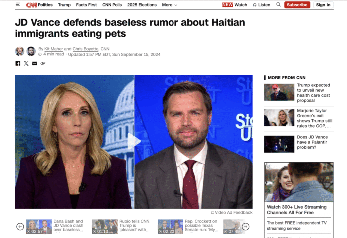 “Lý do tôi thay đổi quan điểm về Donald Trump thực sự được thể hiện rõ ràng bởi những gì đang diễn ra ở Springfield,” Vance nói. “Bởi vì giới truyền thông và chiến dịch tranh cử của Kamala Harris, họ đã gọi cư dân Springfield là những kẻ phân biệt chủng tộc, họ đã nói dối về họ. Họ nói rằng họ bịa đặt những báo cáo về việc người di cư ăn ngỗng, và họ hoàn toàn phớt lờ thảm họa y tế công cộng đang diễn ra ở Springfield ngay lúc này. Bạn biết ai chưa từng phớt lờ điều đó không? Donald Trump.”