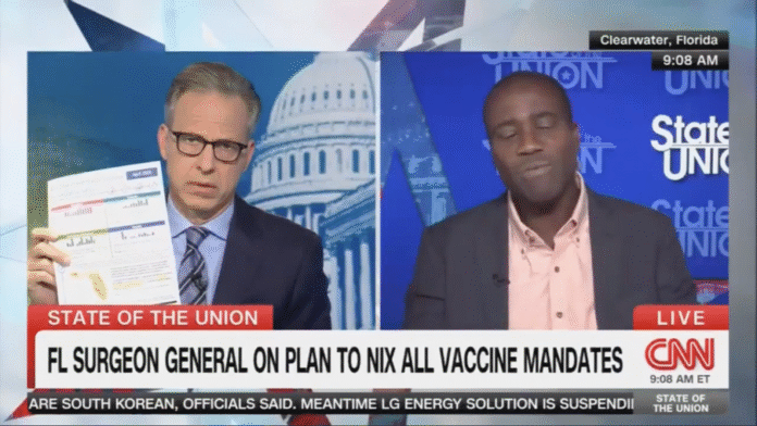 Trong một cuộc phỏng vấn gần đây cùng Jake Tapper trên CNN, Florida Surgeon General Joseph Ladapo được hỏi về việc ứng phó với tình trạng tăng các ca bệnh như viêm gan A, ho gà và thủy đậu—những bệnh hoàn toàn có thể phòng ngừa bằng vaccine. Nhưng khi được hỏi liệu bộ Y tế Florida có tiến hành phân tích dữ liệu để dự báo số ca bệnh tăng thêm nếu bãi bỏ lệnh bắt buộc tiêm chủng, Ladapo trả lời thẳng thừng: