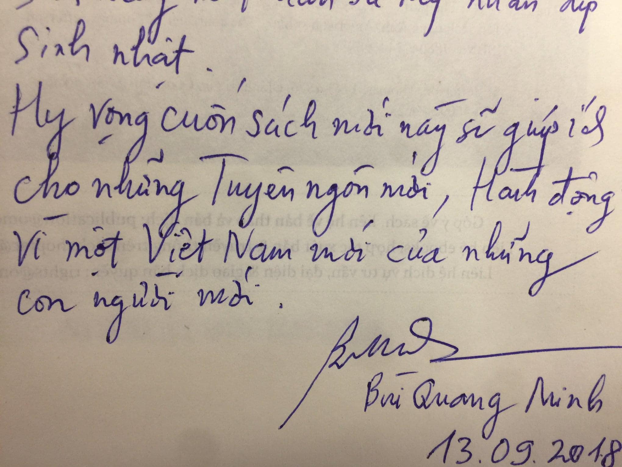 Vẫn là tôi bây giờ, bên chiếc đàn Piano, đầm ấm với người vợ hiền và những đứa con. Nhưng cũng vẫn là tôi ngay tại đây, khắc khoải với một dòng chữ của người bạn vừa mới ghi trong cuốn sách đề tặng: “về một tuyên ngôn mới, hành động mới vì một Việt Nam mới của những con người mới”.