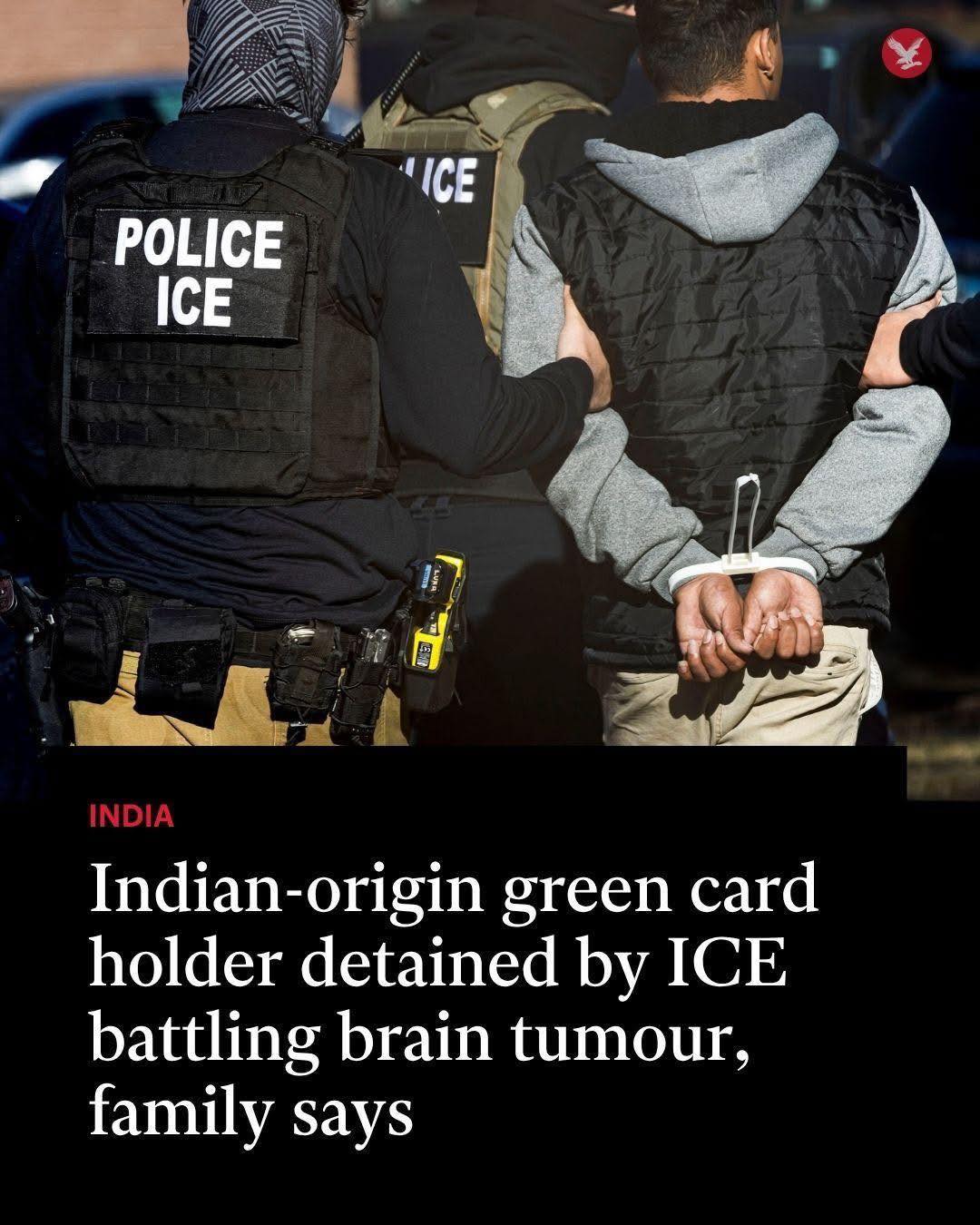 Một người gốc Ấn Độ có thẻ xanh đã bị Cơ quan Thực thi Di trú và Hải quan Hoa Kỳ (ICE) giam giữ hơn hai tháng nay đang phải chiến đấu với khối u não và bệnh tim, theo lời gia đình và luật sư của ông.