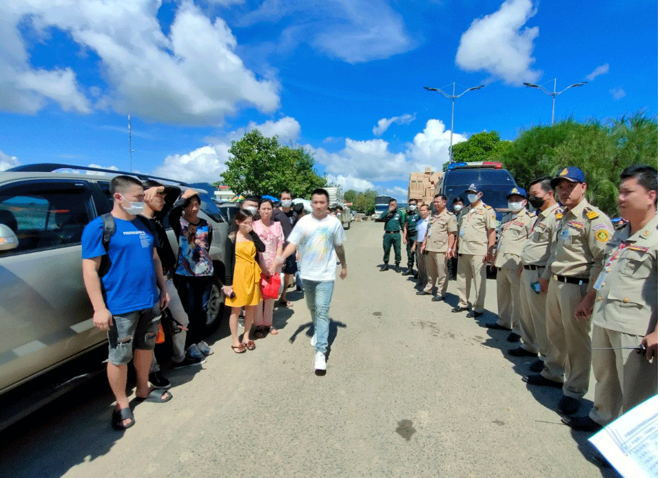 Đợi sẵn ở gần trệt toà nhà là vài người Trung Quốc và một phiên dịch. Họ yêu cầu cả nhóm test COVID rồi ký hợp đồng lao động.