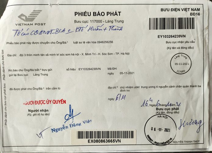 Ngày 6/11/2021, ông Trần Cẩm Tú đã nhận được đơn Tố cáo của tôi, nội dung: Tố cáo Cơ quan An ninh điều tra-Bộ Công an bỏ lọt tội phạm, bao che cho tội phạm, không khởi tố ông Đoàn Văn Huấn và bà Chu Thị Thành. Nhưng đến nay đã hơn 2 tháng, ông Tú không trả lời đơn tố cáo của tôi !!!