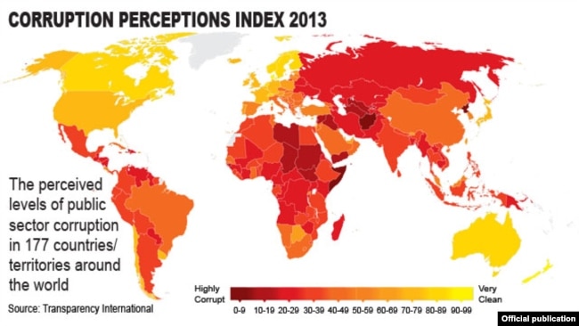 Chỉ số tham nhũng của tổ chức Minh bạch Quốc tế công bố năm 2013. VIệt Nam hiện đang đứng thứ 113/176 theo đánh giá của tổ chức này.
