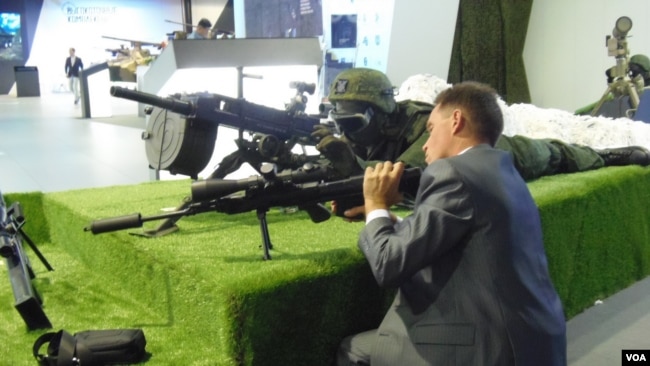 Súng do Nga chế tạo tại triển lãm vũ khí ở Moscow năm 2014. Nga hiện là nhà cung cấp vũ khí chính cho Việt Nam, theo số liệu của SIPRI.