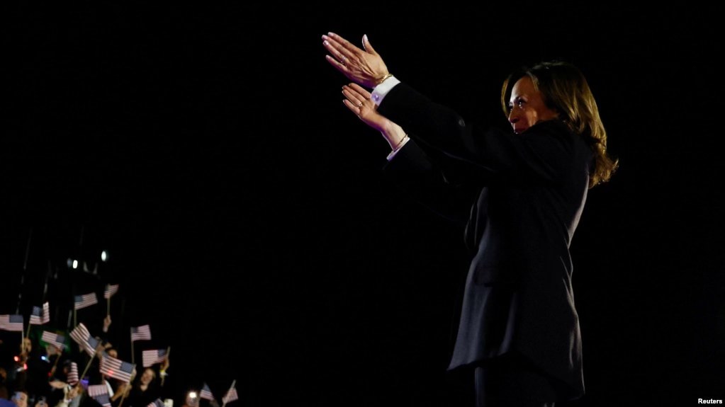 Quang cảnh bà Harris phát biểu tối ngày 29/10/2024.