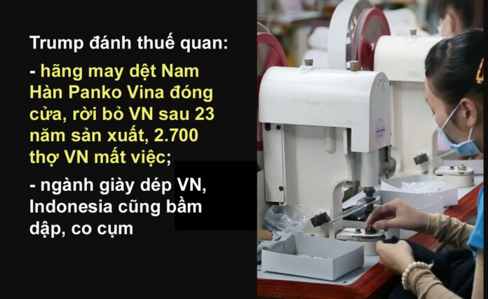 Trump đánh thuế quan: hãng may dệt Nam Hàn Panko Vina rời bỏ VN sau 23 năm sản xuất, 2.700 thợ VN mất việc; ngành giày dép VN, Indonesia cũng bầm dập, co cụm