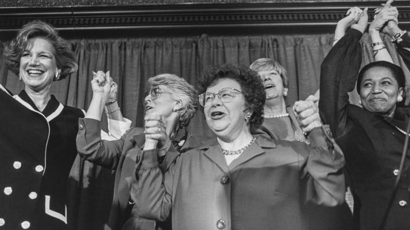 Thành viên của “National Women in Politics Caucus”, thành lập năm 1971, ăn mừng đắc cử của phụ nữ năm 1992
