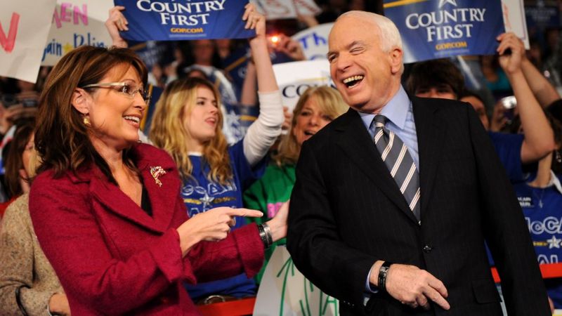 Sarah Palin trở thành ứng cử viên phó tổng thống đầu tiên của đảng Cộng hòa năm 2008. Thượng nghị sĩ quá cố John McCain là ứng cử viên tổng thống cùng liên danh – nhưng họ đã thua liên danh của Tổng Thống và phó tổng thống đương nhiệm Barack Obama – Joe Biden.