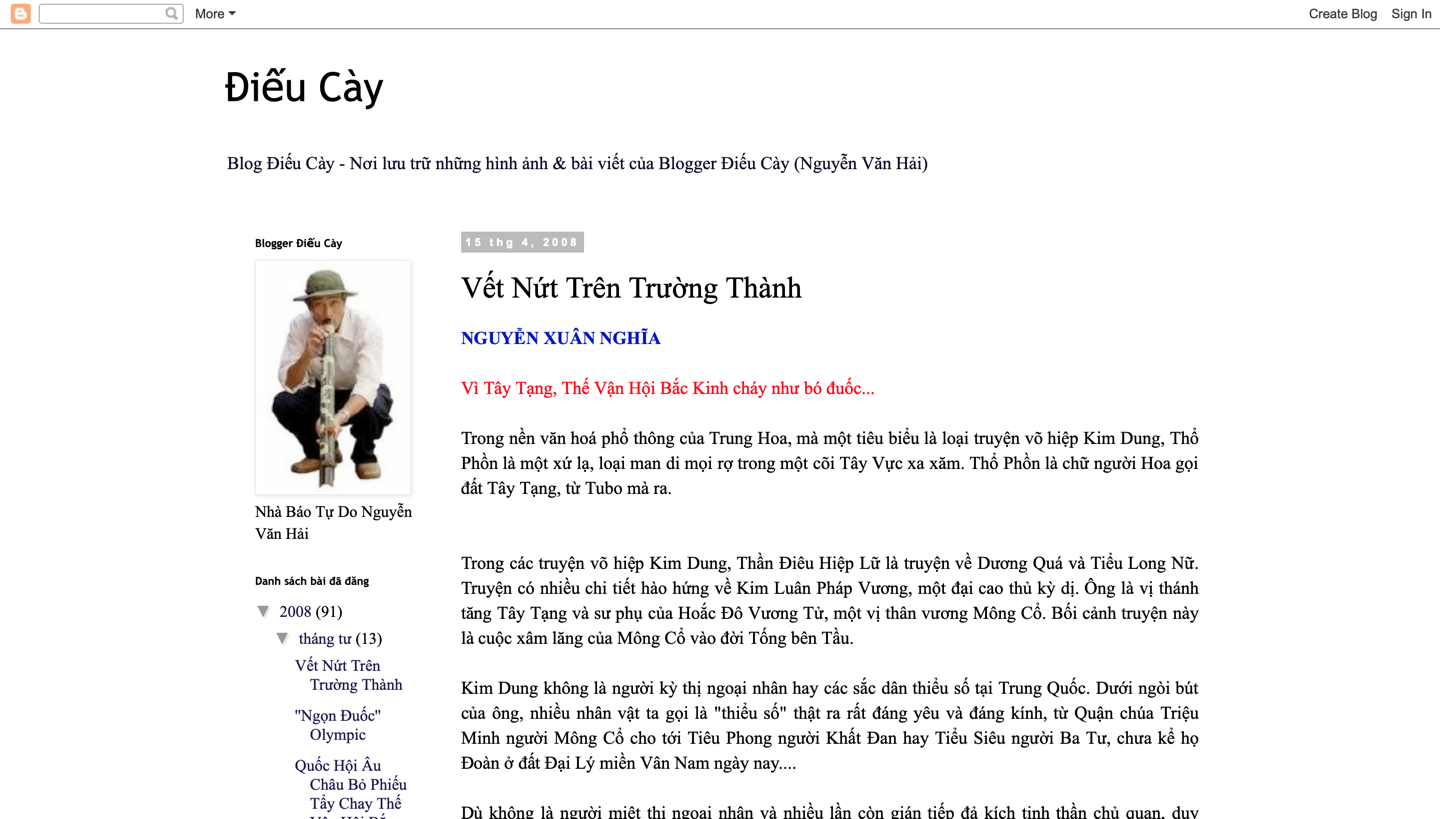 Ảnh chụp màn hình trang Blog Điếu Cày 15-4-2008.